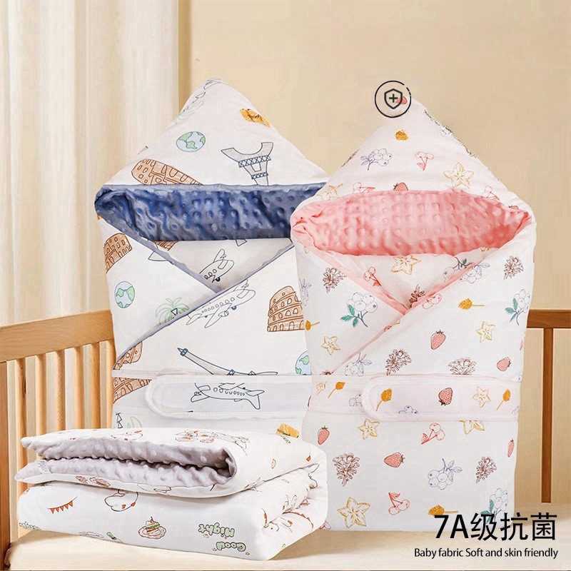 新生児ガーゼおくるみ 秋冬綿入りベビーおくるみ 産室おくるみ 可愛い漫画柄新生児足こぎ防止おくるみ