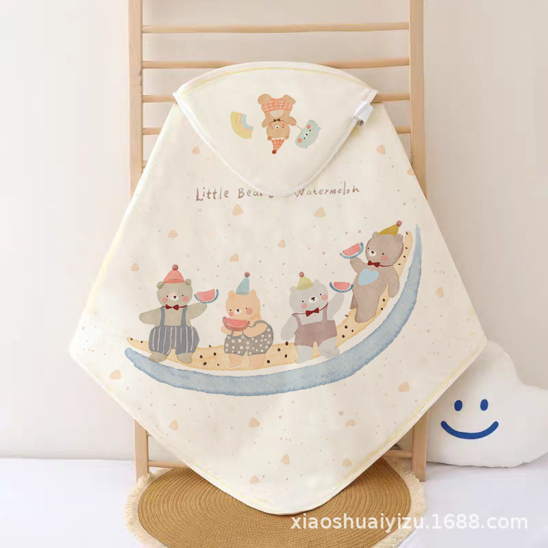 ベビー四層綿ガーゼブランケット春夏新生児ブランケットベビーブランケットシングルロング耳フード付き新生児ブランケット