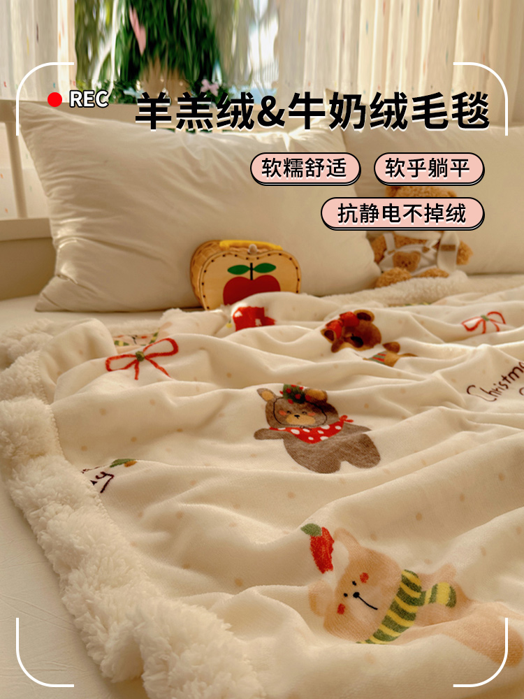 漫画クリスマスベアーミルクベルベット布団コーラル毛布オフィス昼寝小さな毛布子供用ソファ毛布