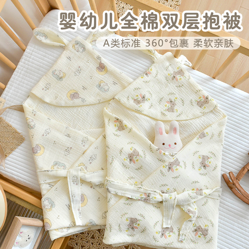 生まれたばかりの赤ちゃんの純綿A類は赤ちゃんの夏の薄いタイプの二重ガーゼに包まれ、出産室の子守帯に毛布を巻いている