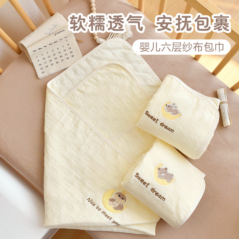 六層ガーゼの新生児バッグは赤ちゃんに抱かれて生まれたばかりの子供に包まれてタオルになだめられ、アニメの子守帯に産室された
