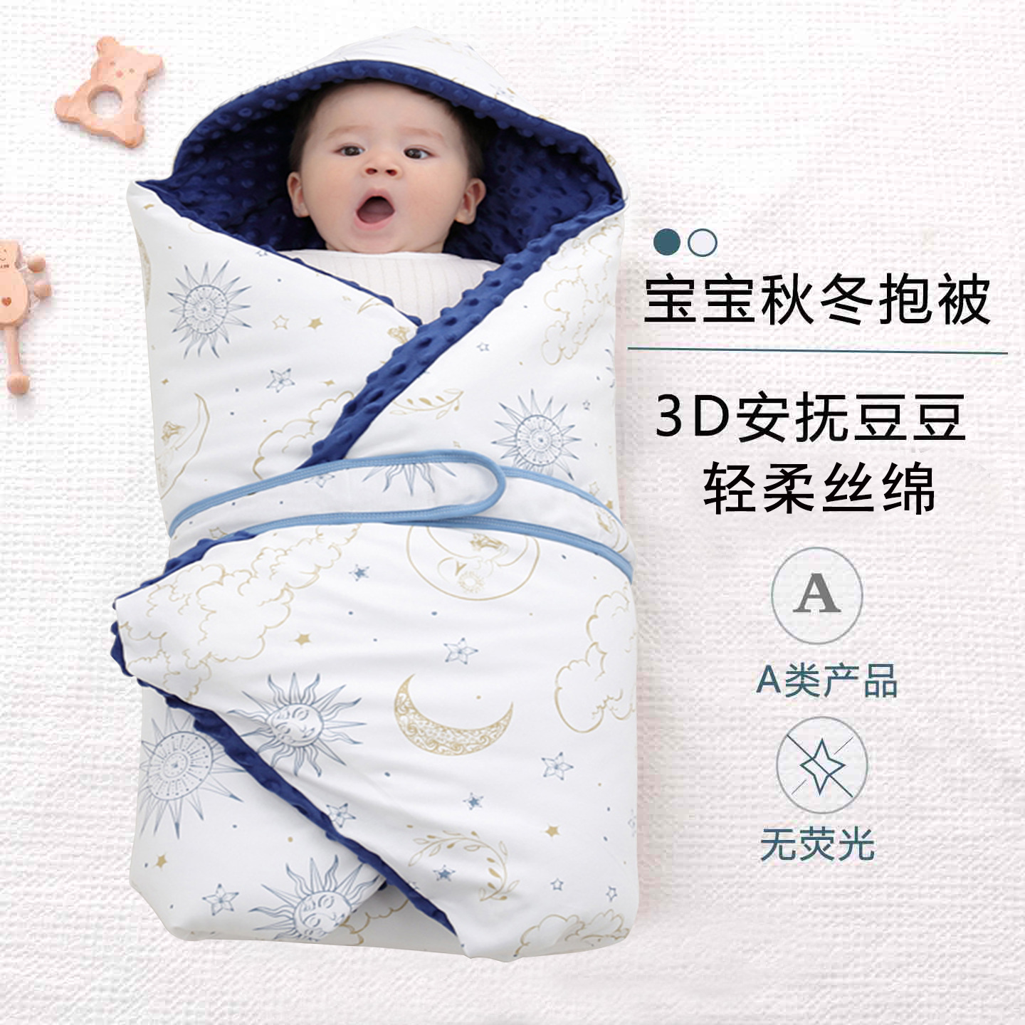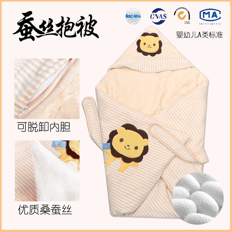 新生児抱き布団四季彩綿绢糸布団初生冬厚手抱き毛布ベビー用品包み布団