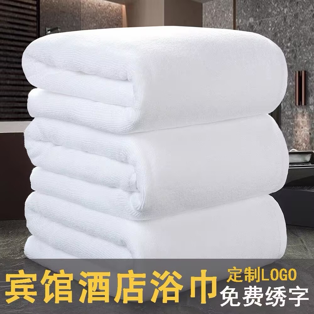 ホテルタオル 純綿バスタオル 白 卸売 厚手 高級民宿 アパート 温泉施設 刺繍ロゴ入り 柔らかい