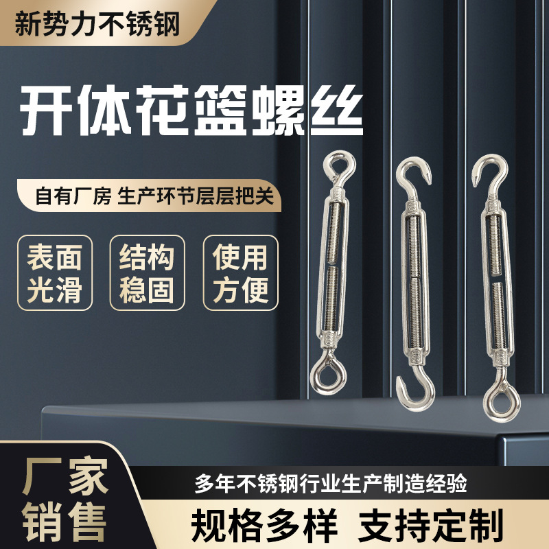 ステンレス開体花籠ねじロープ締め器304ステンレス花籠ボルト二重フックスクリュー