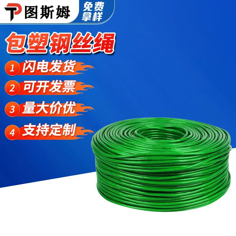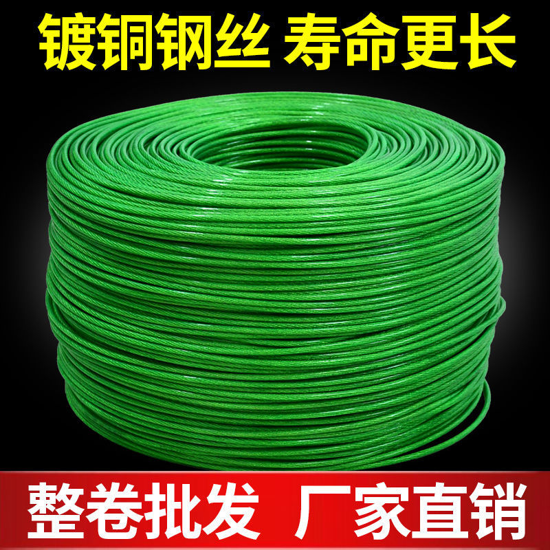 プラスチックコーティングされた鋼線ロープ、耐摩耗性、防錆性、緑色の皮で覆われたプラスチックコーティングされた鋼線ロープ、バルコニー物干しロープ、緑色のプラスチックコーティングされたロープ、プラスチックコーティングされた鋼線