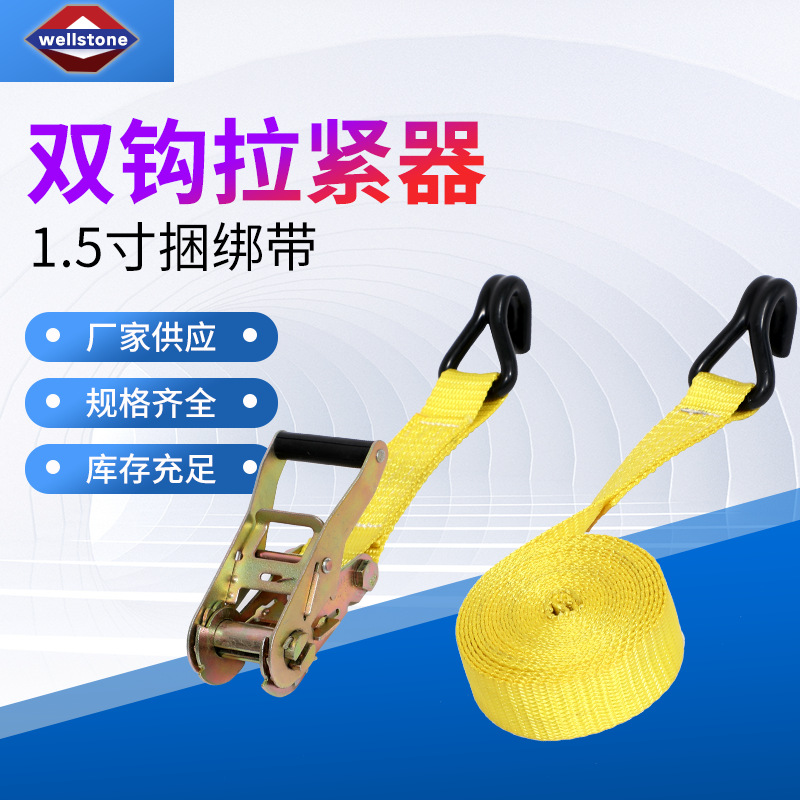 ラチェット張力1.2インチダブルフック締縄器貨物結束ベルト自動車固定器トラック締付器