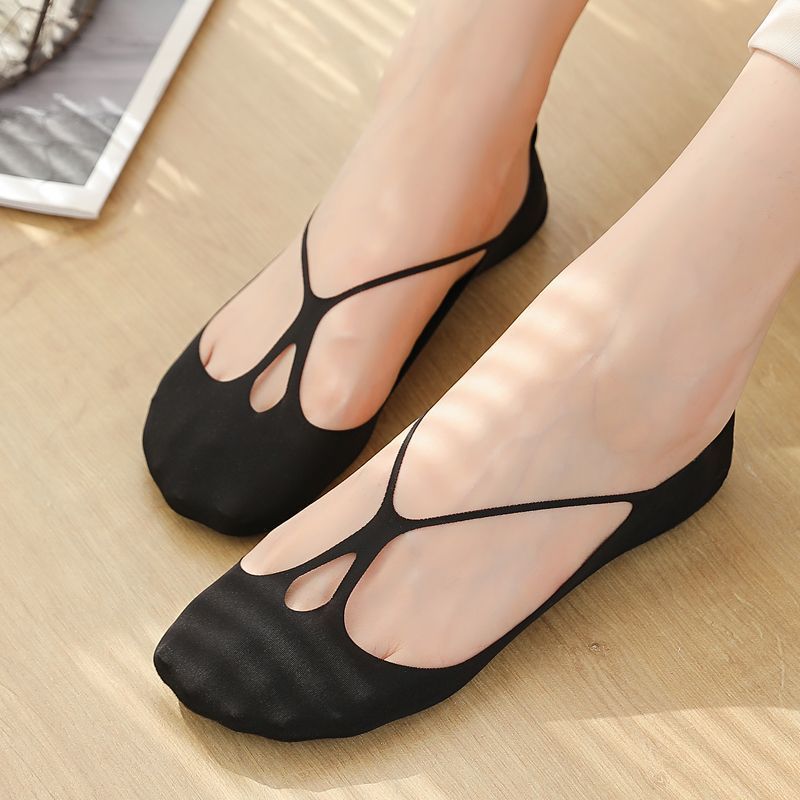 夏用女性用アイスストッキング、薄い浅い口のシリコン滑り止め、脱落防止、セクシーなサスペンダー、綿底、通気性のある目に見えないボートソックス