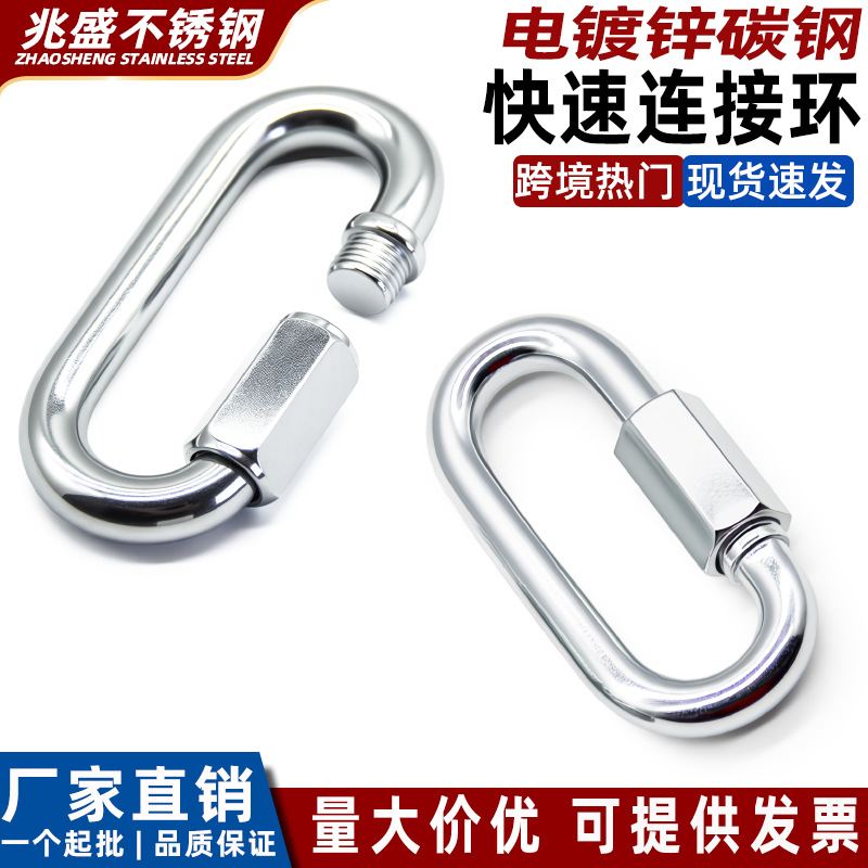 電気亜鉛メッキ炭素鋼クイックコネクティングリング、スイングチェーン耐荷重鉄製コネクティングバックル、クライミング安全登山ペットバックル