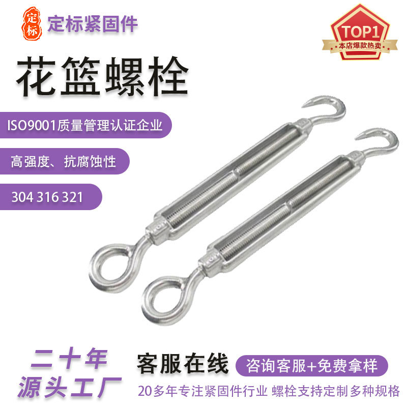 304 ステンレス鋼フラワーバスケットボルトオープンボディフラワーランスクリュー鋼線ロープ締め付け装置ロック装置船舶部品