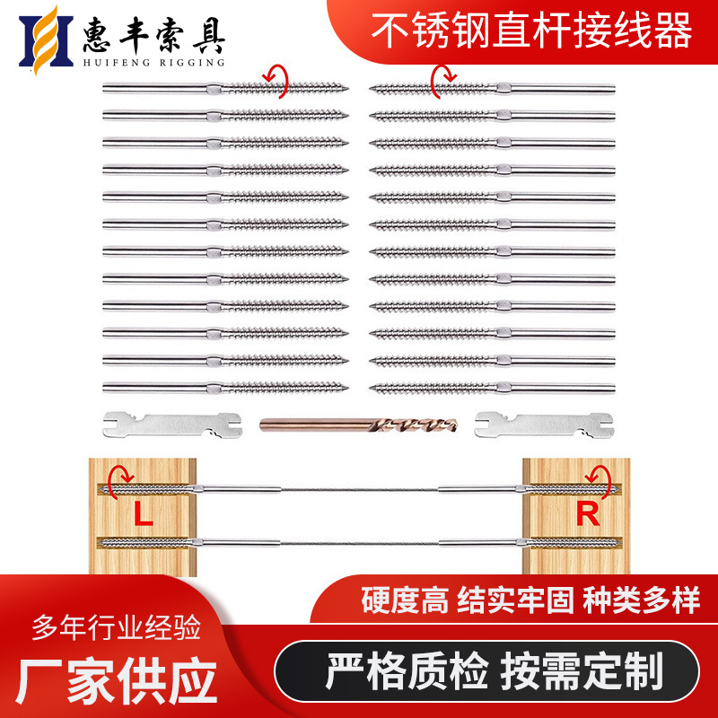 アマゾン製ワイヤーロープコネクター1/8 直線型カバー付きナットスペーサー ガードレール工事用アクセサリー ロープ