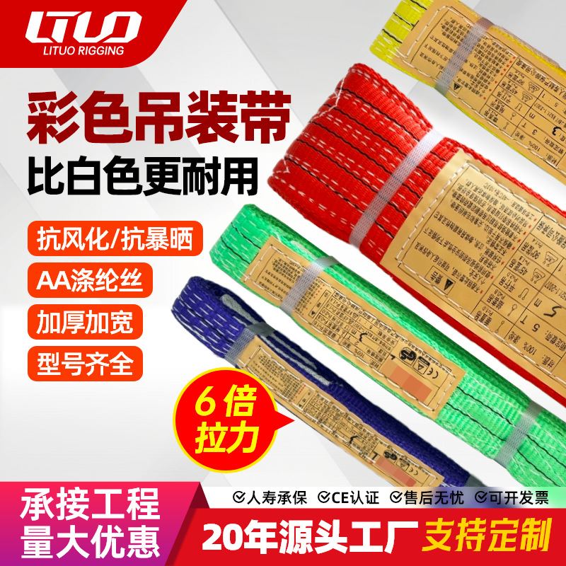 カラー国家規格フラット吊りベルト、クレーン吊りベルト、2/3/5/10トンメートル工業用吊りベルト