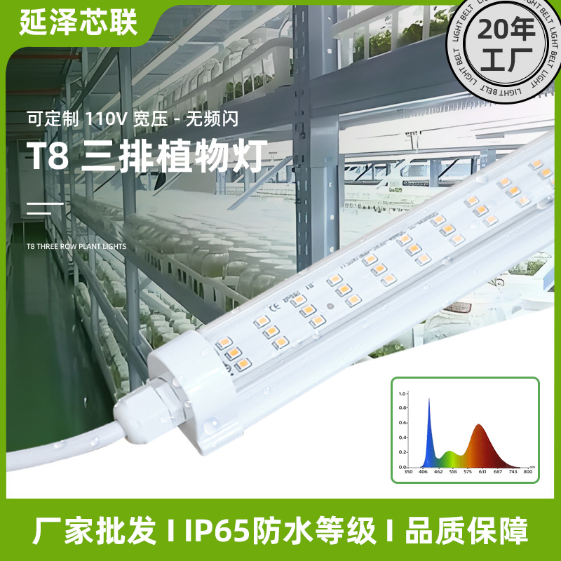 T20全スペクトルLEDクロスボーダー植物成長灯防水四列多肉着色uv花卉育苗補助灯管