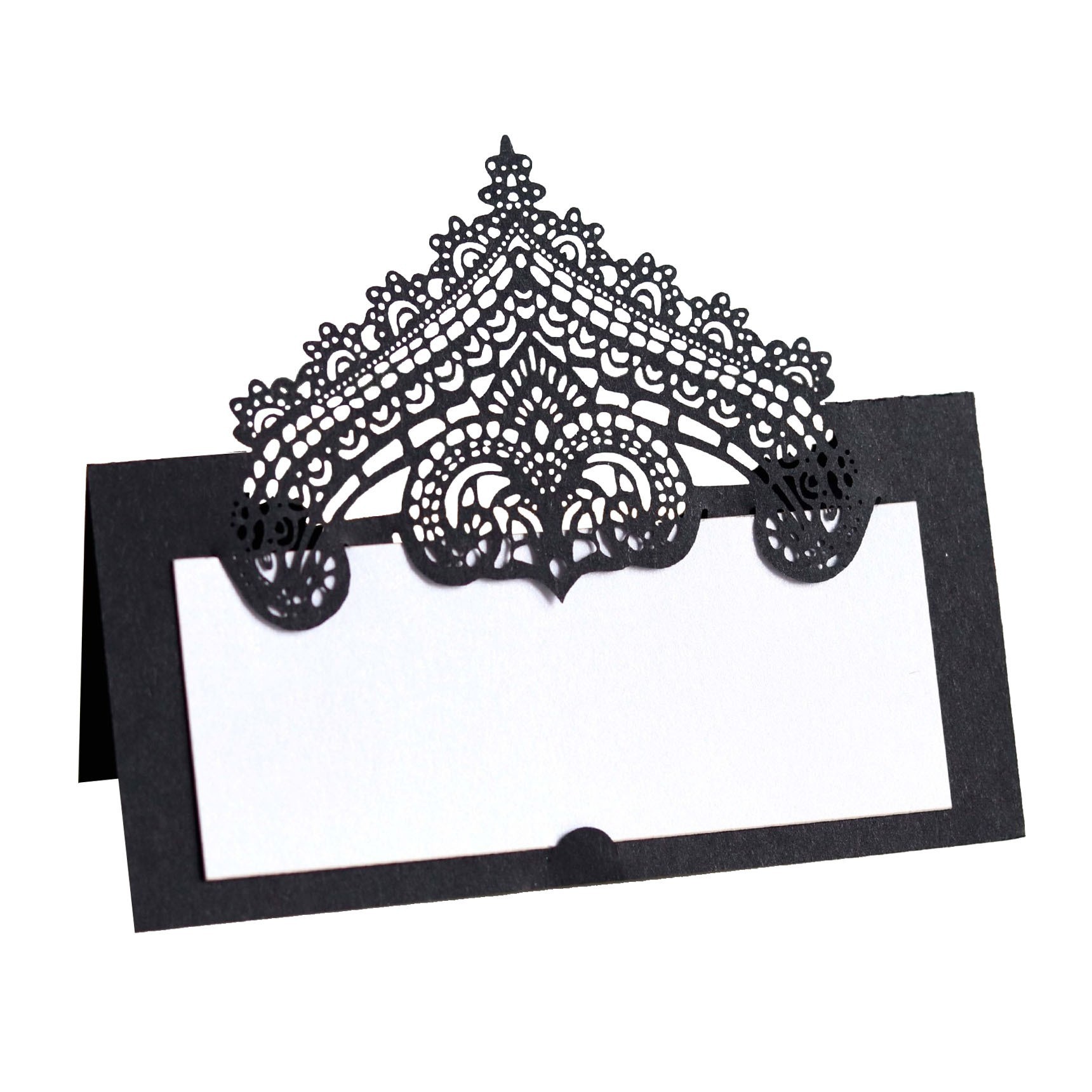 結婚レーザー席カードの透かし彫りレースの立体席カードのヨーロッパ式の黒いレースの名前はテーブルの現物に署名します。