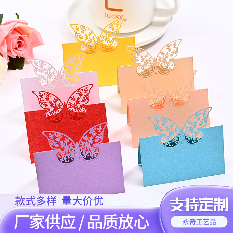 アマゾンウェディング蝶席カードレーザー透かし紙コップカード蝶壁貼り装飾カード深セン卸売り