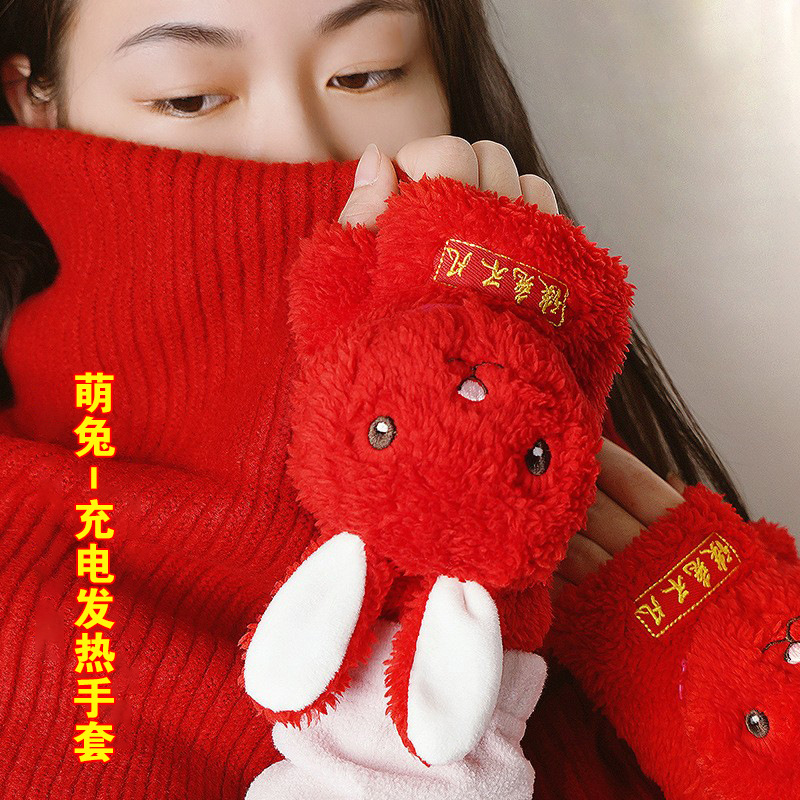 JANPIM萌えウサギ保温発熱半指手袋usb充電屋外保温かわいいオフィスタイプ暖かい手宝