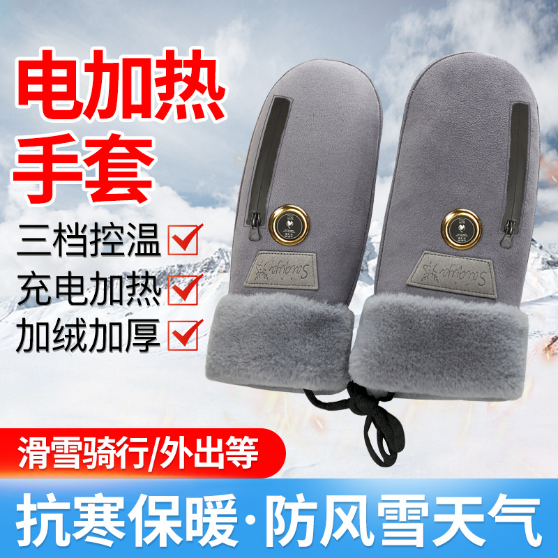 ✅電気手袋充電加熱ファスナー電池電気暖手袋出勤外出保温発熱防風手袋