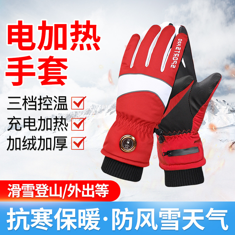 国境を越えた電気加熱手袋防寒加熱保温手袋冬のアウトドアスキー手袋