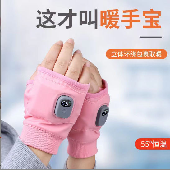クロスボーダー新型加熱半指手袋デジタル充電発熱手袋スポーツゲーム事務電気保温手袋