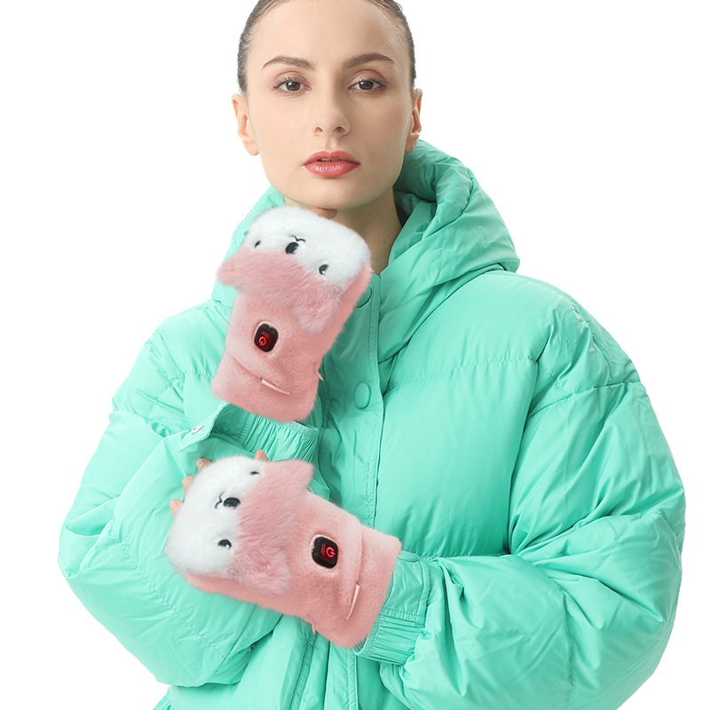 クロスボーダー電気加熱手袋かわいいキツネの毛の半分の指がふたを開けて温度を調整します。