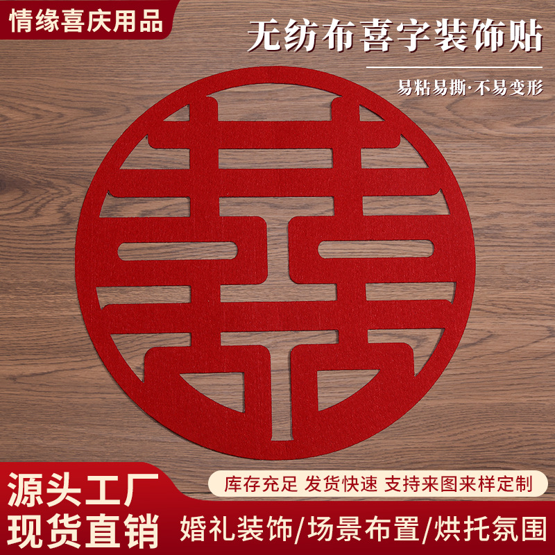 メーカー直販結婚祝い用品フェルト不織布喜字貼小サイズの結婚部屋の装飾は結婚喜字窓の花を配置します。