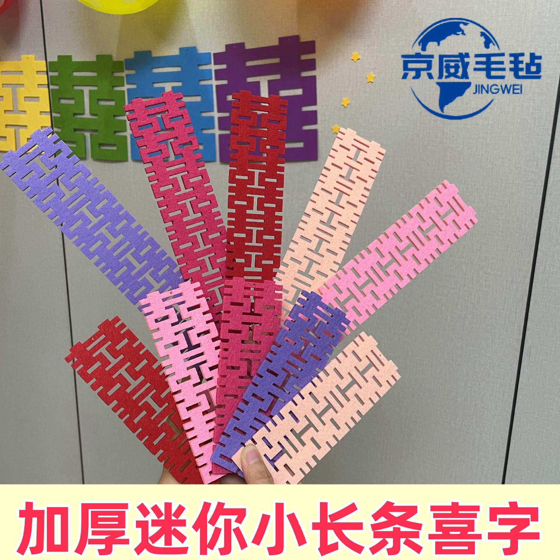 2mm厚さミニ長条喜字手持ち小喜子結婚小喜字フェルトストラップ鉢植え結婚部屋装飾