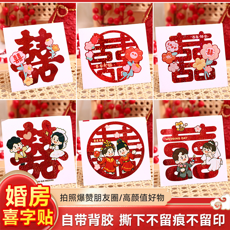 ウェディング用品結婚喜字静電気貼りガラス窓花結婚室装飾喜字貼り双喜シールセット大全