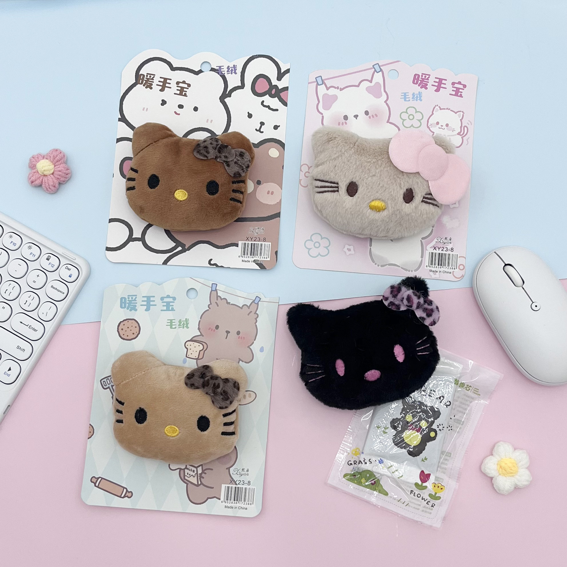 かわいい漫画風ぬいぐるみハンドウォーマー、黒いレザー風KTカプセル型自己発熱ハンドウォーマー、学生向け綿入りハンドウォーマー、卸売