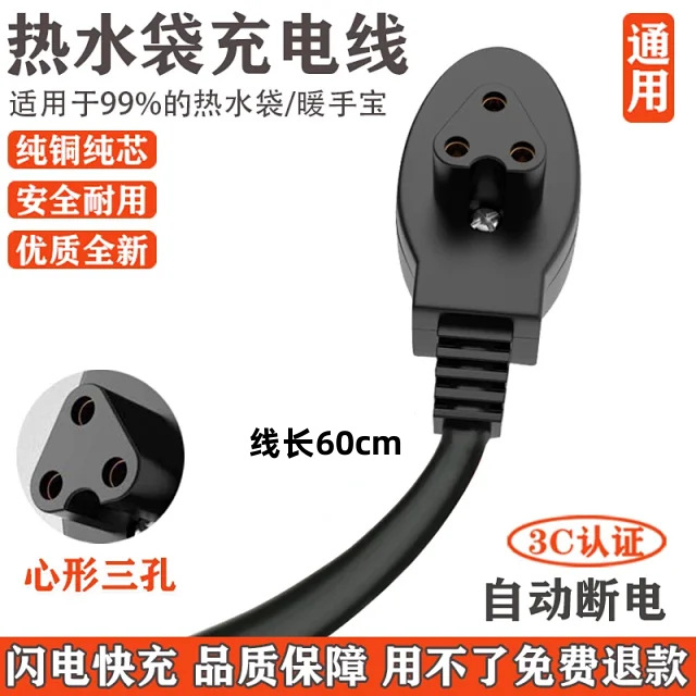 汎用型三穴湯たんぽ充電線暖かい手宝電源コード電気暖かい宝3穴プラグ充電器暖かい赤ちゃん