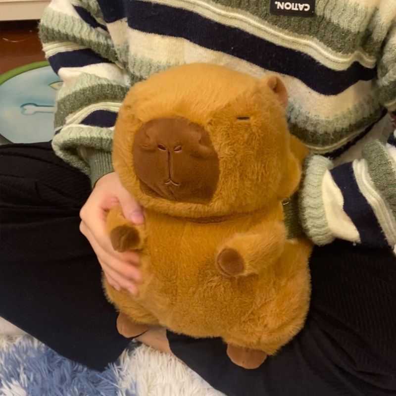 カピバラの赤ちゃんのカピバラの冬の手で湯たんぽを手に入れます。