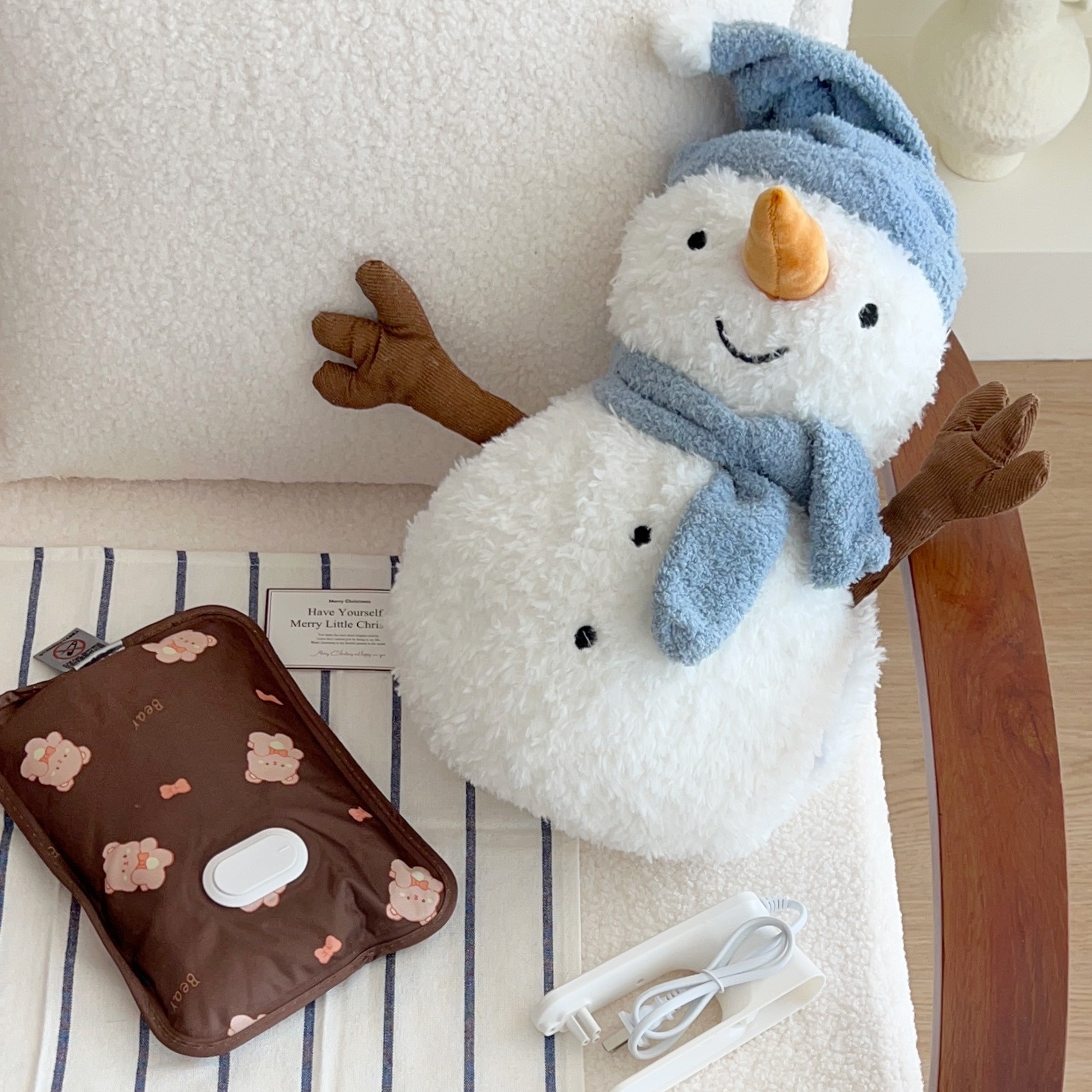 冬の青い帽子雪だるま人形湯たんぽかわいいアニメ保温充電式防爆型ぬいぐるみ