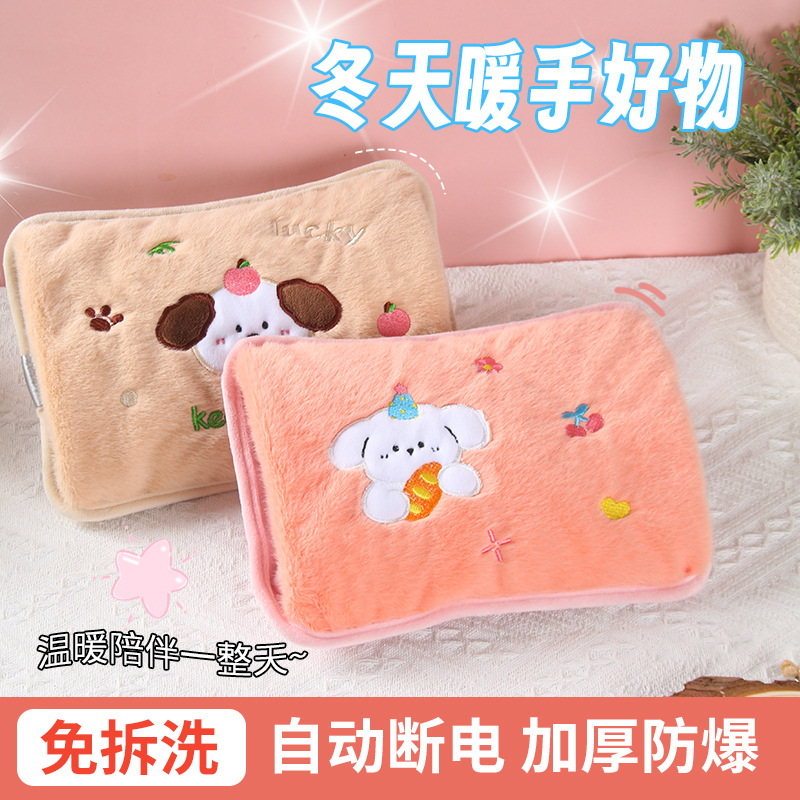 现货跨境欧安全防爆卡通电热水袋丝光充电暖手宝新款冬便携暖手袋