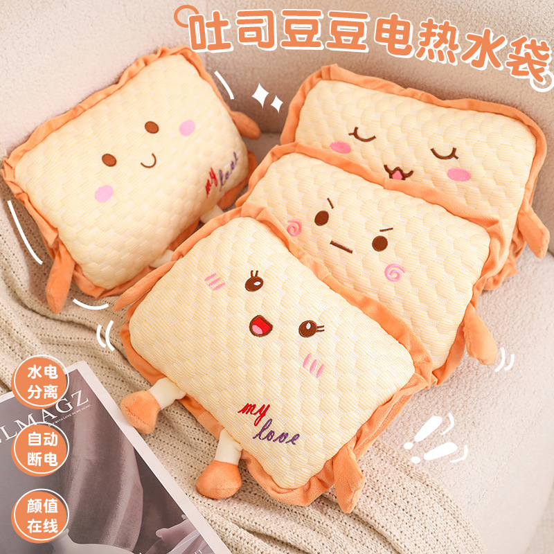 かわいいトースト電気湯たんぽ三合一の便利なぬいぐるみ電気湯たんぽに手を入れて、冬の暖手宝を分解することができる