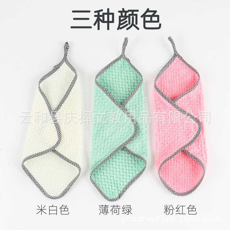 パイナップルチェックの雑巾、キッチン家庭用掃除用ふきん、糸くずの出ない吸水性の小さな正方形のタオル、吊り下げ式の多機能ハンドタオル