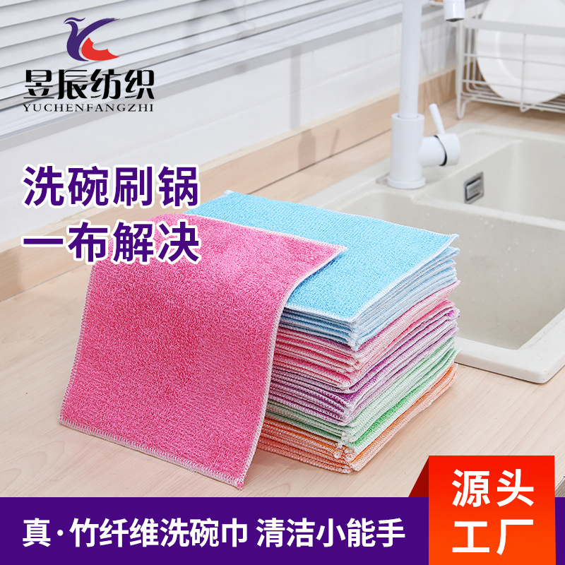 メーカー卸売り二重厚竹繊維皿洗いタオル台所の家事清潔雑巾は油をつけにくい皿洗い布