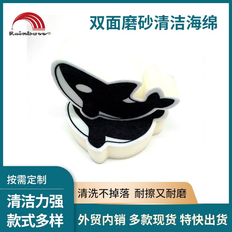 メーカーは爆発的な両面フロスト洗浄スポンジキッチン家具浴室洗浄イルカの形の木糊綿を供給している