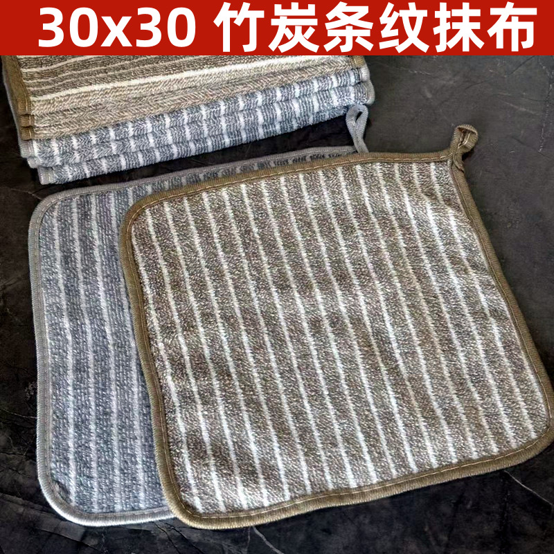 [30x30] エッジバンディング竹炭ストライプディッシュタオルクリーニングキッチン雑巾マイクロファイバー両面厚手の雑巾
