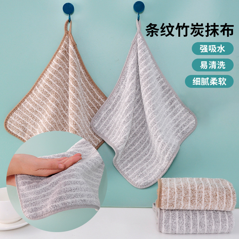 ストライプ竹炭ふきん キッチン カチオン 吊り下げ紐付き 洗い物用クロス 油汚れ防止 吸水性食器拭きクロス 百貨店卸売