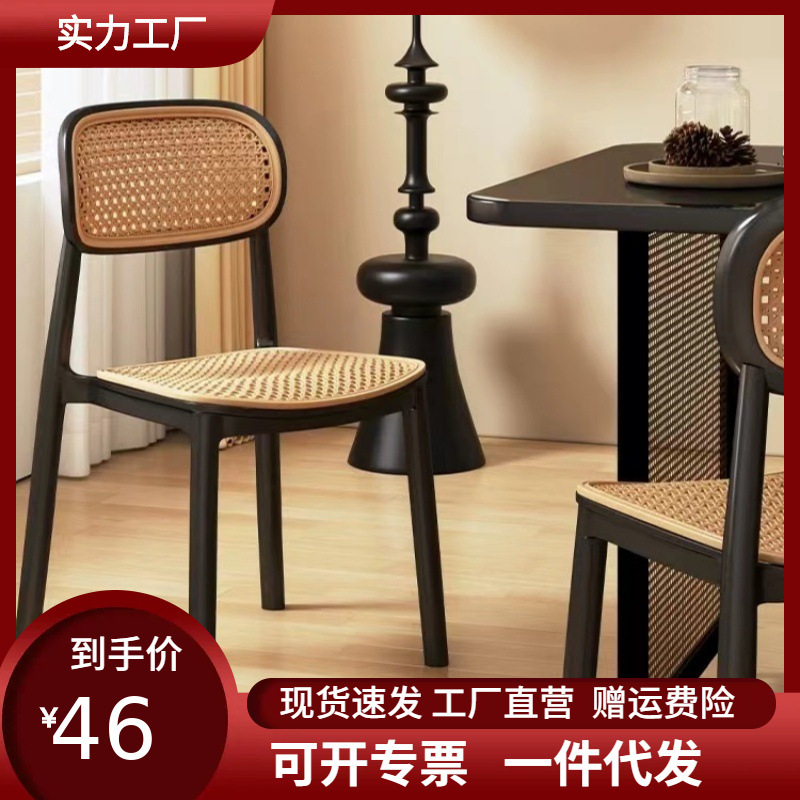 籐編みダイニングチェア家庭用北欧実木椅子insネット赤書房編み籐椅子民宿中古椅子レトロ籐椅子