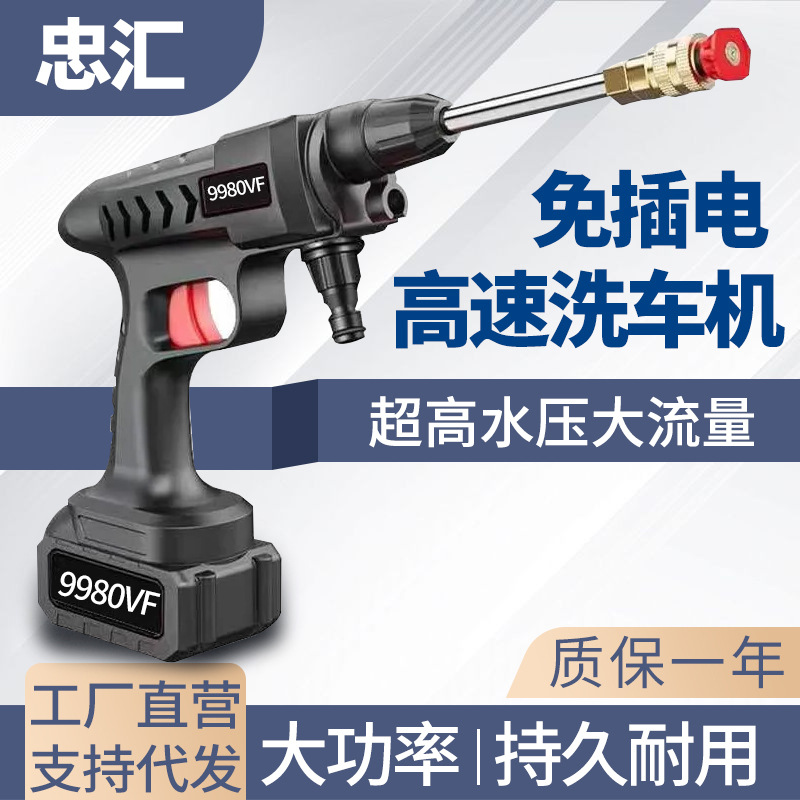 クロスボーダーブラシレス洗車機ハイパワーポータブル家庭用車載リチウム電気高圧水鉄砲電動無線洗車機