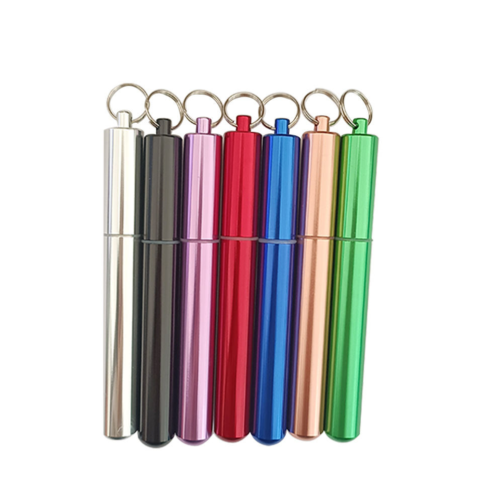 多色アルミ合金ステンレス伸縮ストロー収納瓶金属収納瓶キーホルダーアルミ瓶
