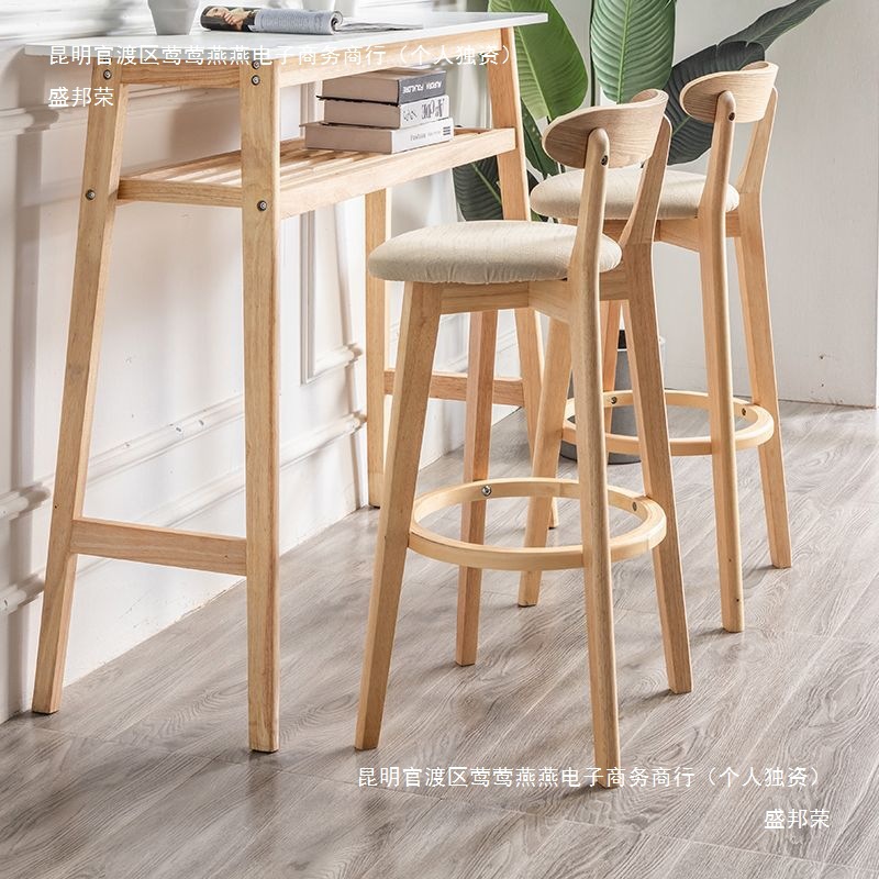 木製バー椅子北欧現代シンプルバー椅子家庭用背もたれバー腰掛けフロントミルクティー店レジャー高足椅子