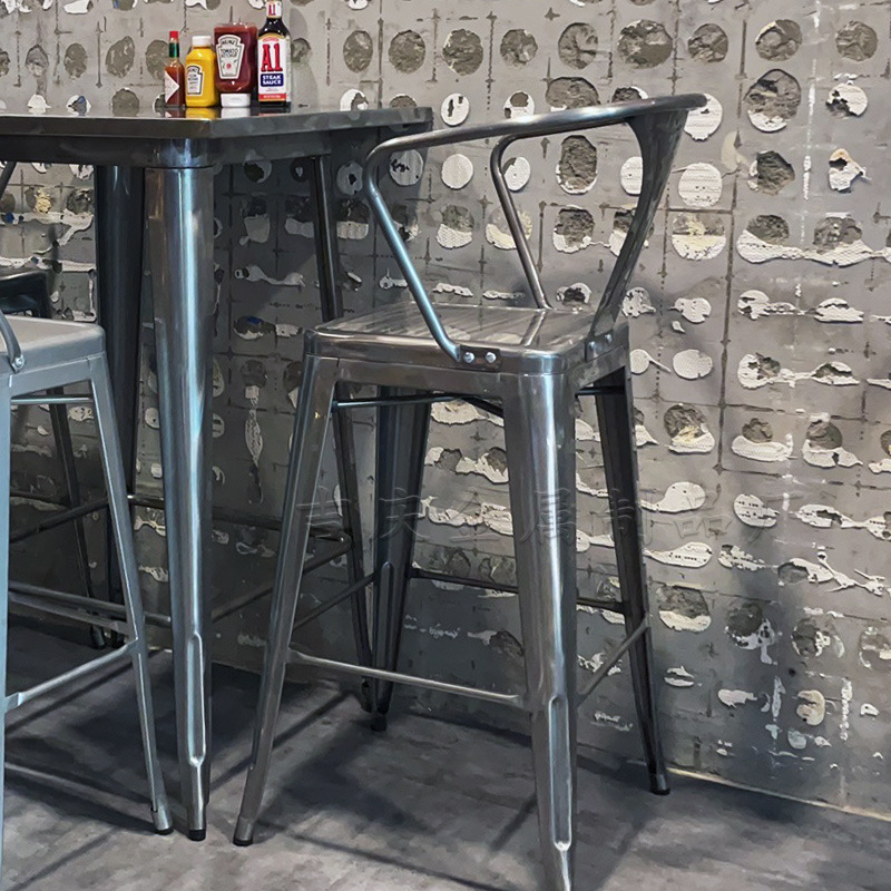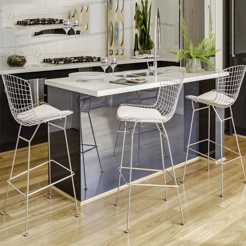 現代のシンプルな伸線高脚椅子ステンレスバーの背もたれ椅子ネット赤カフェのフロントの高足椅子