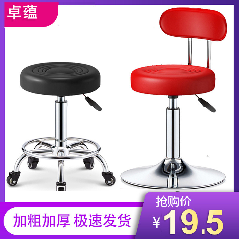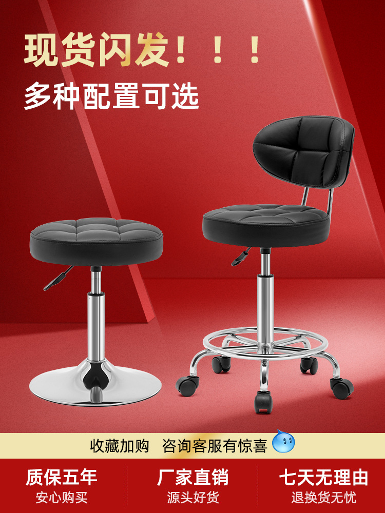 バーチェア昇降回転実験室病院皮革背もたれ丸腰掛け美髪紋刺繍化粧大工滑車腰掛け