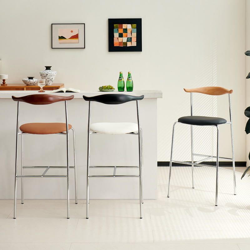 ライト高級バーチェア西洋レストランハイバーチェアモダンホームキッチンアイランドハイスツールレザーバーハイスツール