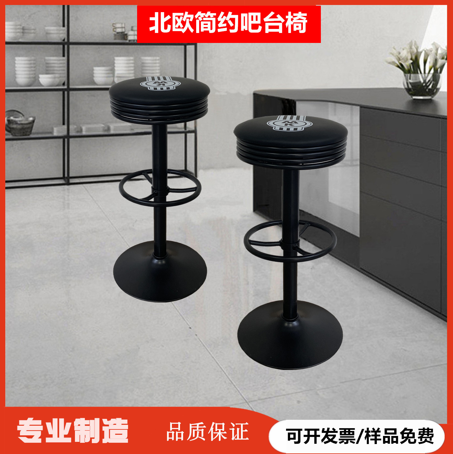 工場直販北欧ガーデンシートロゴ回転昇降バーチェアレザーブラックハイスツールバーチェア安い