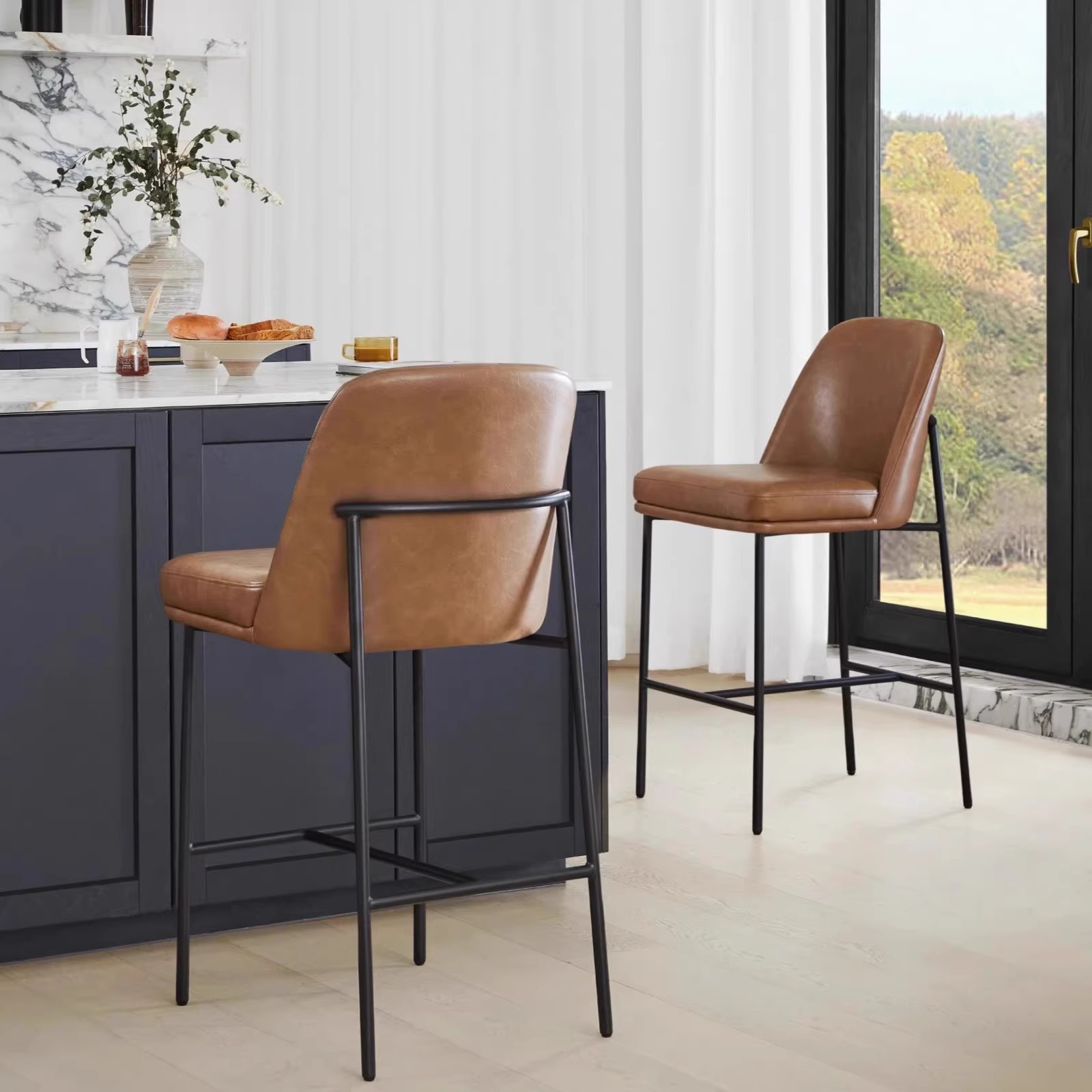 中国のモダンなメタルナショナルスタイルサドルレザーホームレストランチェアバーチェアハイチェアソリッドカラーキッチンシングルチェアダイニングチェア