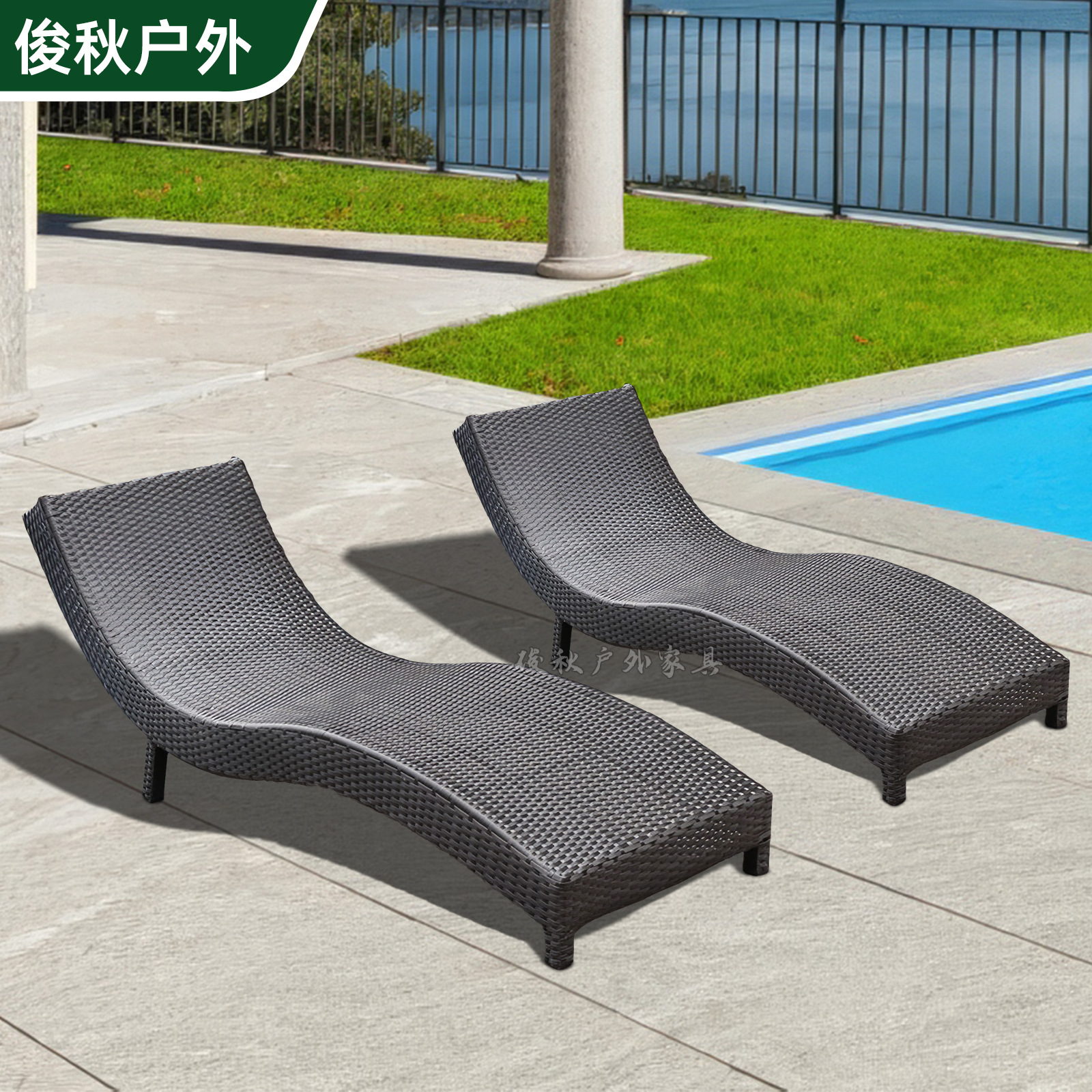 屋外用リクライニングチェア、別荘の中庭、スイミングプール、ビーチチェア、屋外テラス、バルコニー、レジャー用籐製リクライニングベッド、ポータブル折りたたみ式