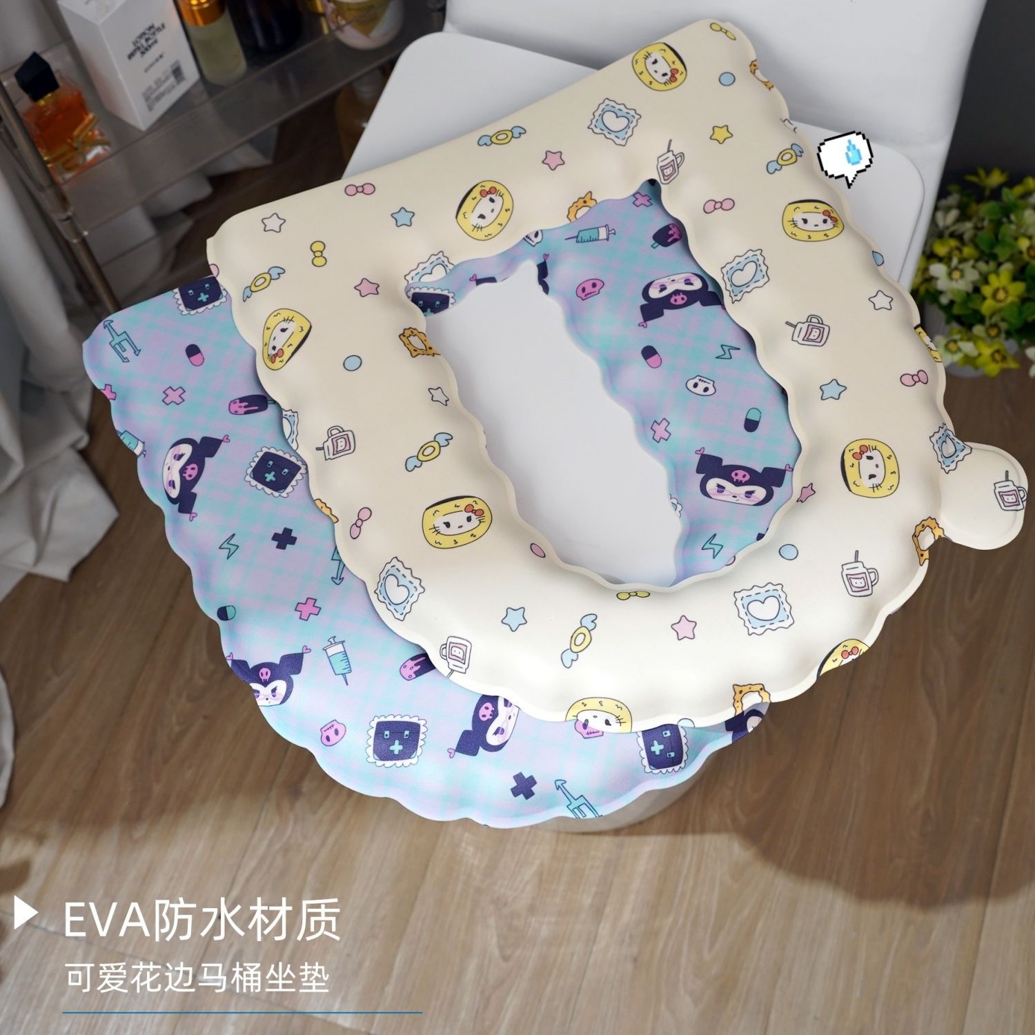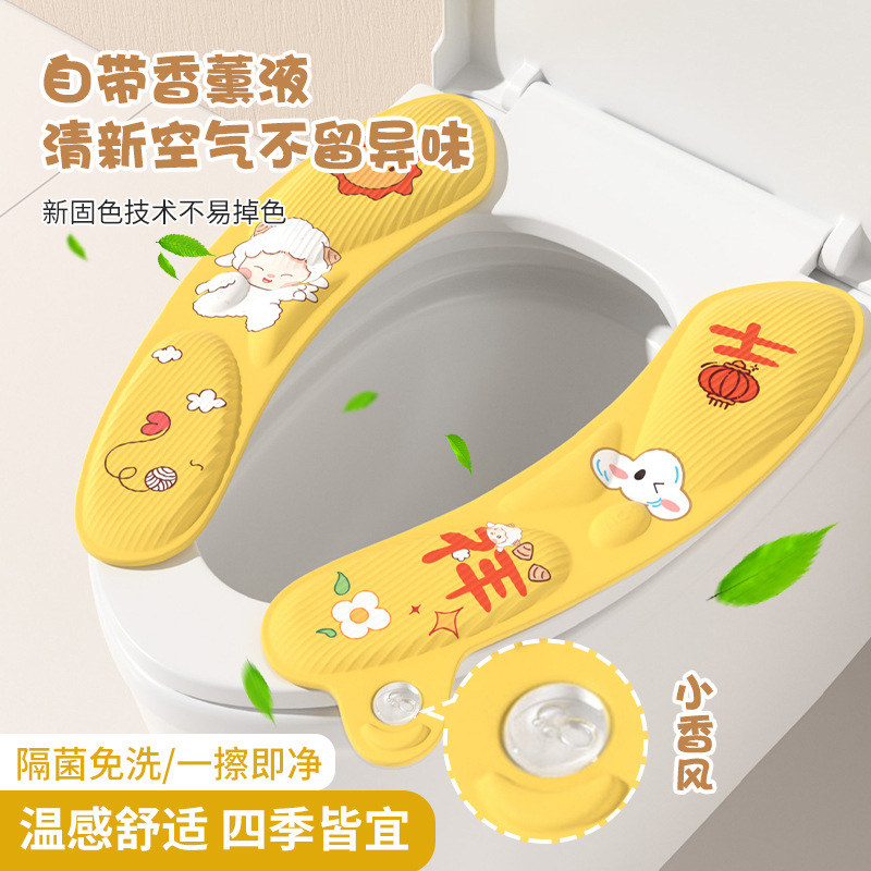 EVA防水トイレマット、洗える、オールシーズン万能便座カバー、家庭用抗菌粘着かわいいリング