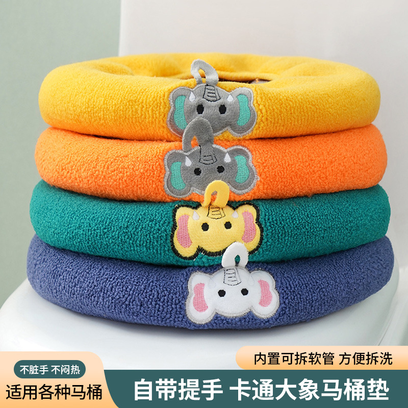 漫画の象柄トイレマット 秋冬用 ジッパー付きニット製トイレマット 取り外し可能で厚手で暖かい