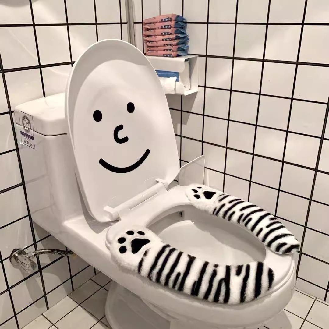 日系かわいい猫の爪トイレマット家庭用粘着式便器座布団リング冬のぬいぐるみトイレ座布団座布団セット